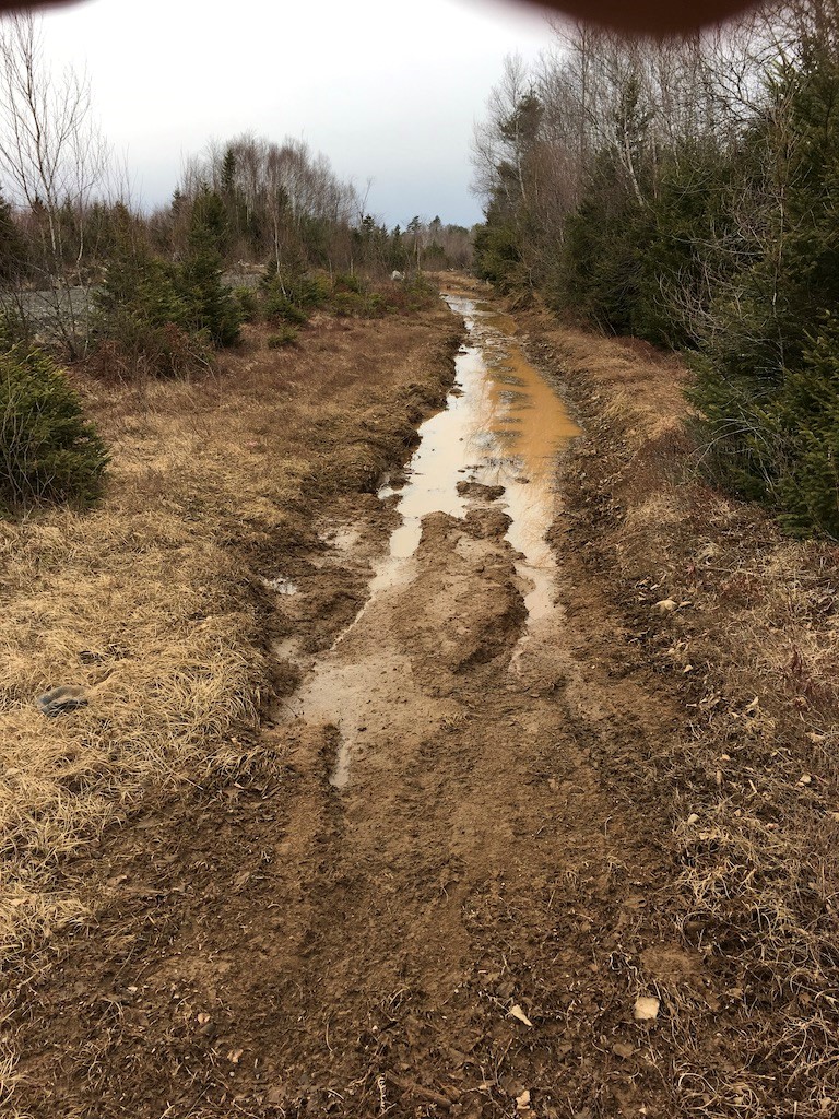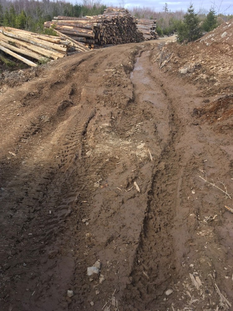 Thousands of dollars’ worth of damage done to our harvesting road behind Rosley Road in Beaver Bank by OHVs driving while the frost was coming out. I had to completely rebuild and gravel the road.